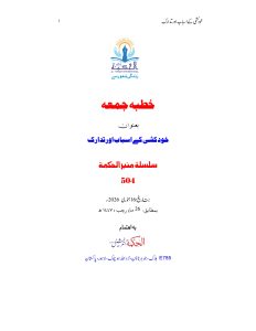 خودکشی کے اسباب میں مایوسی، شدید ذہنی دباؤ، معاشی مشکلات، خاندانی جھگڑے، تنہائی اور دینی کمزوری نمایاں ہیں، جب انسان مشکلات کے سامنے ہمت ہار بیٹھتا ہے تو یہ سوچ پیدا ہو جاتی ہے۔ اسلام میں خودکشی سخت حرام ہے اور زندگی کو اللہ تعالیٰ کی امانت قرار دیا گیا ہے، اس لیے اس کا تدارک صبر، توکل، دعا اور اللہ سے مضبوط تعلق کے ذریعے ممکن ہے۔ اہلِ خانہ اور معاشرے کی ذمہ داری ہے کہ پریشان افراد کی بات سنیں، ان کی حوصلہ افزائی کریں اور انہیں تنہا نہ چھوڑیں۔ دینی تعلیمات، مثبت سوچ، بروقت مشاورت اور ضرورت پڑنے پر ماہرین سے مدد لینے سے ذہنی سکون حاصل ہو سکتا ہے اور قیمتی انسانی جانوں کو بچایا جا سکتا ہے۔